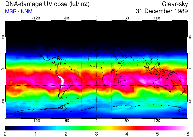 DNA-damage UV dose of 31 December 1989