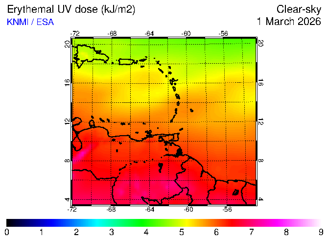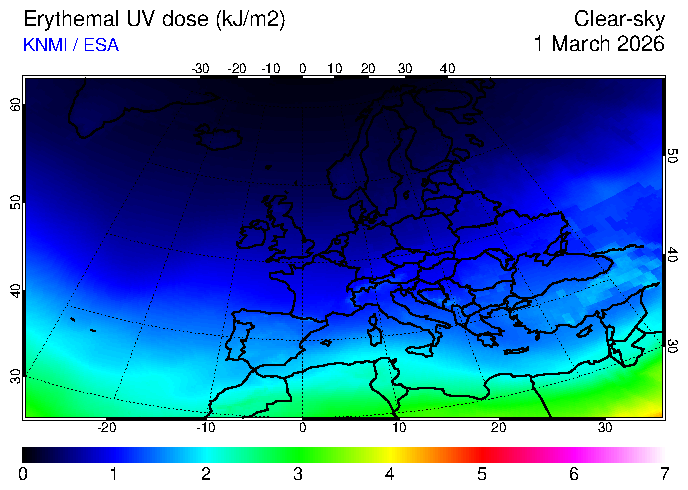 Clear-sky UV index:   erythemal