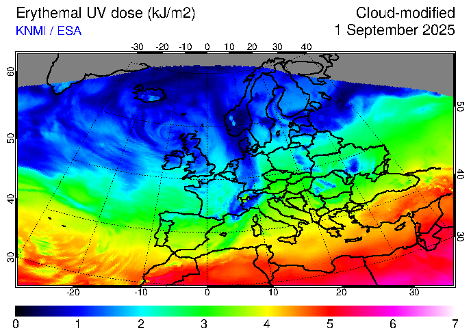 Erythemal UV dose of 01 September 2025