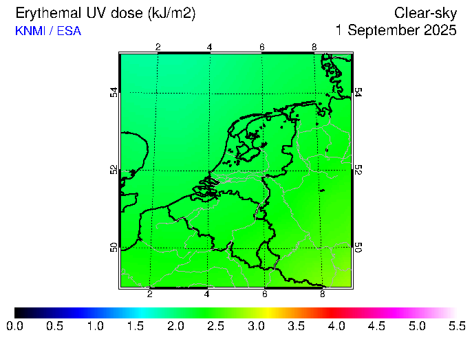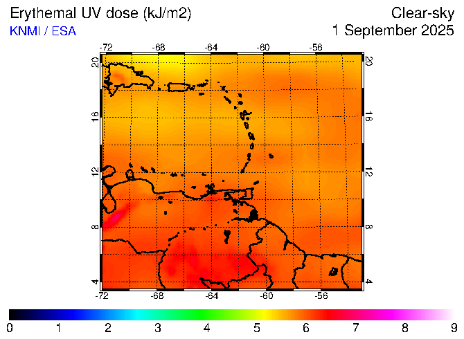 Clear-sky UV index:   erythemal