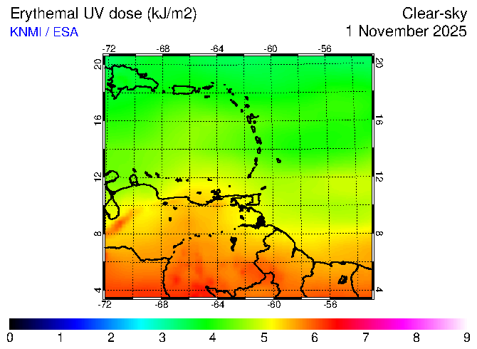 Clear-sky UV index:   erythemal