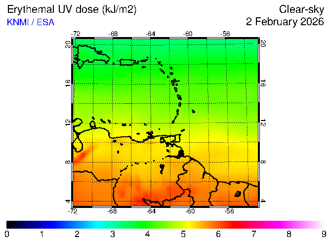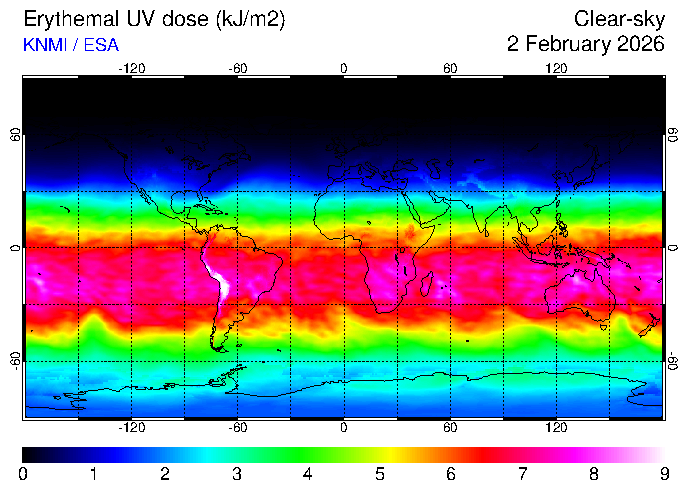 Clear-sky UV index:   erythemal