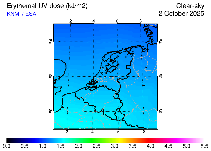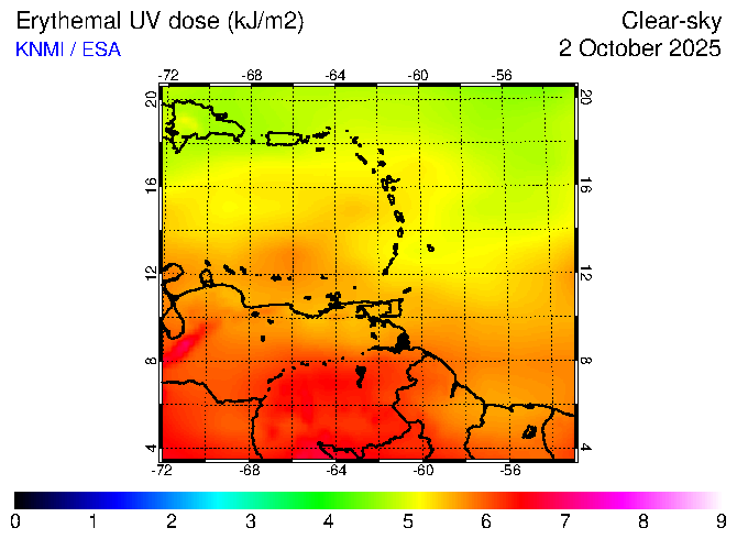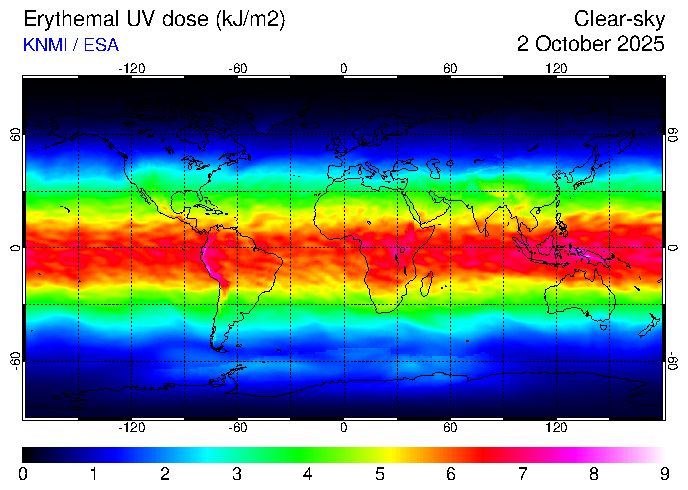 Clear-sky UV index:   erythemal