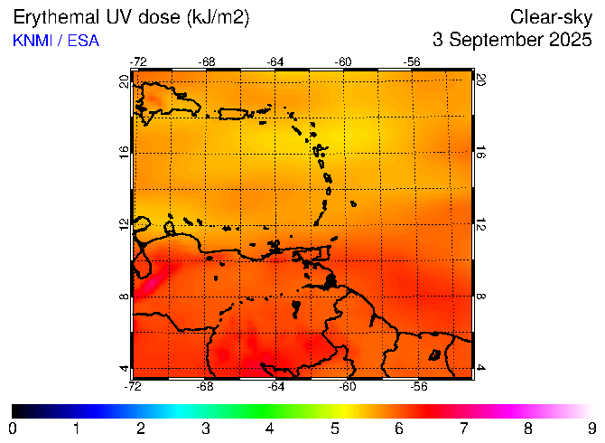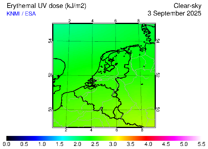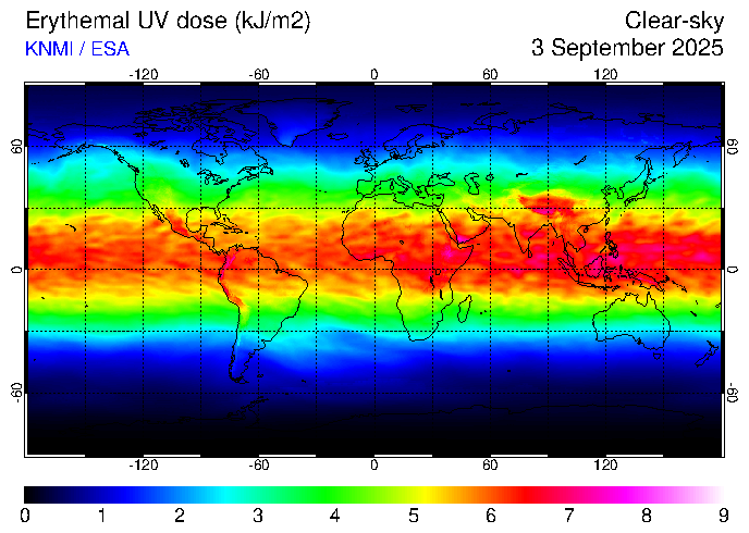 Clear-sky UV index:   erythemal