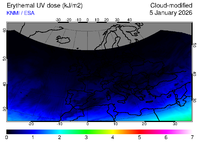 Erythemal UV dose of 05 January 2026