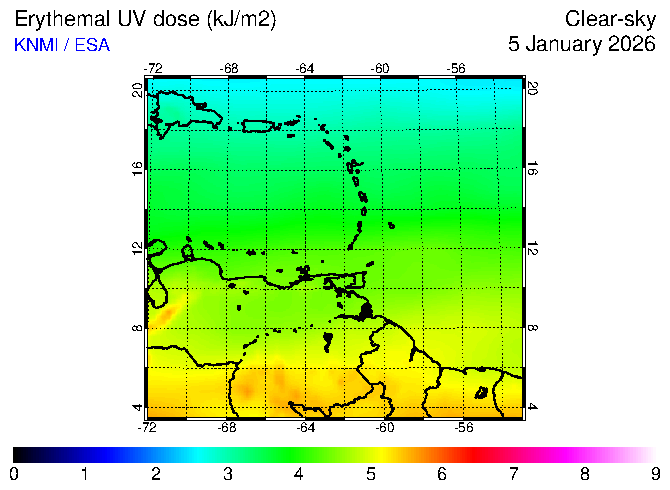 Clear-sky UV index:   erythemal