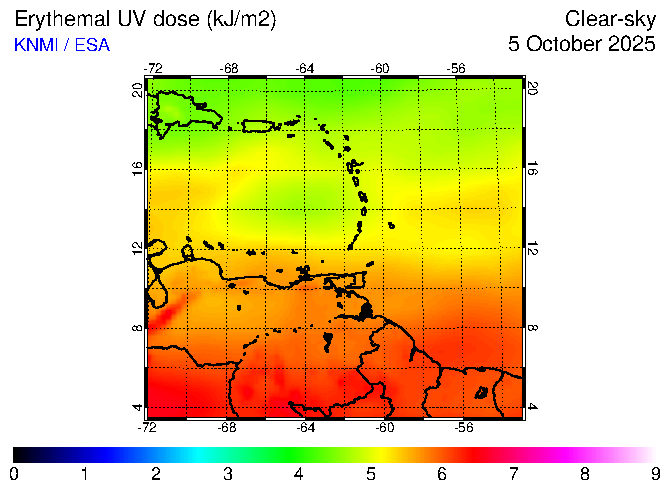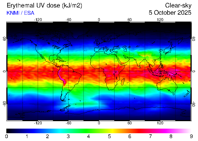 Clear-sky UV index:   erythemal