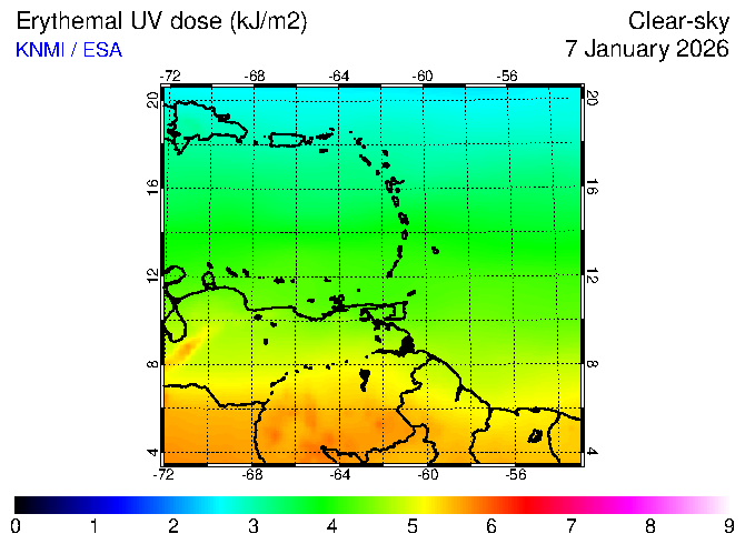 Clear-sky UV index:   erythemal