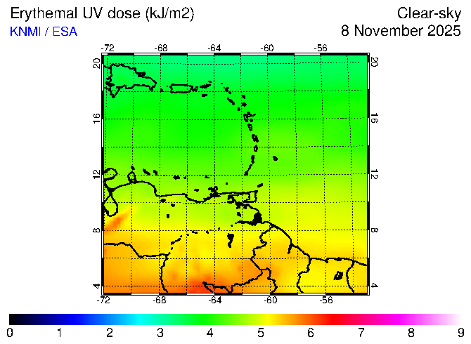 Clear-sky UV index:   erythemal