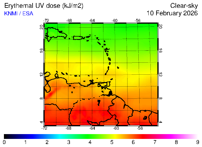 Clear-sky UV index:   erythemal