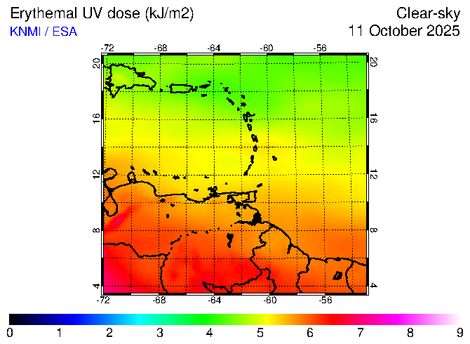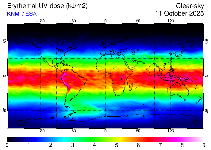 Clear-sky UV index:   erythemal