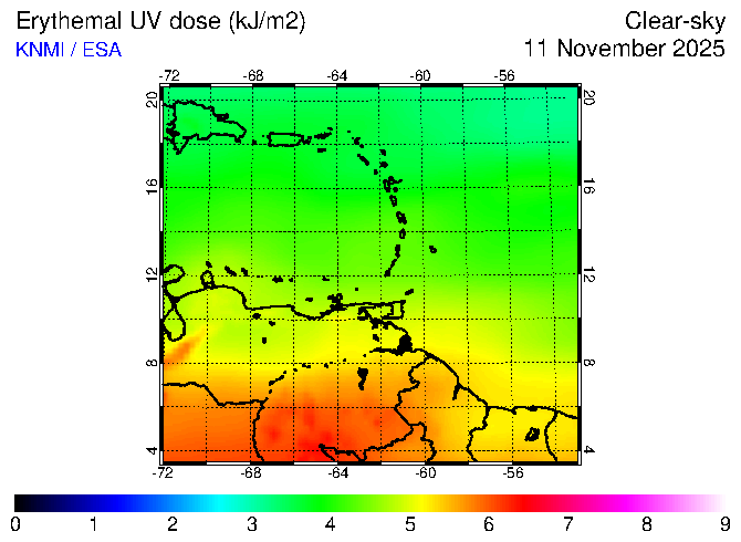 Clear-sky UV index:   erythemal