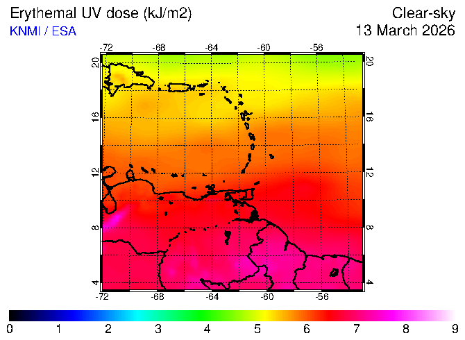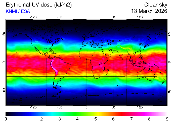 Clear-sky UV index:   erythemal
