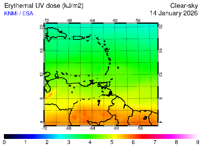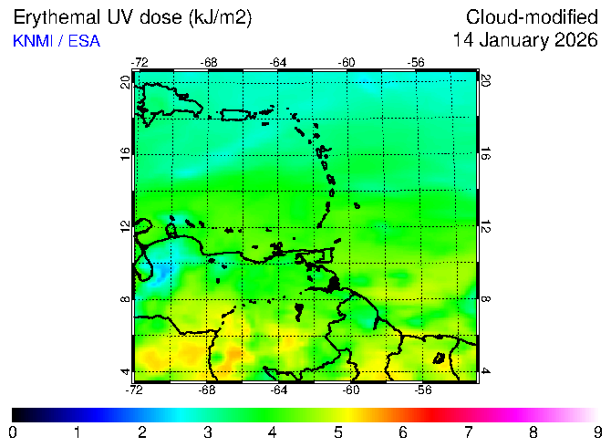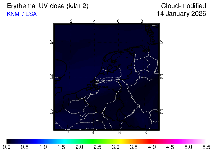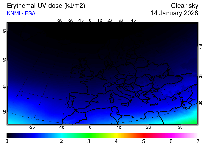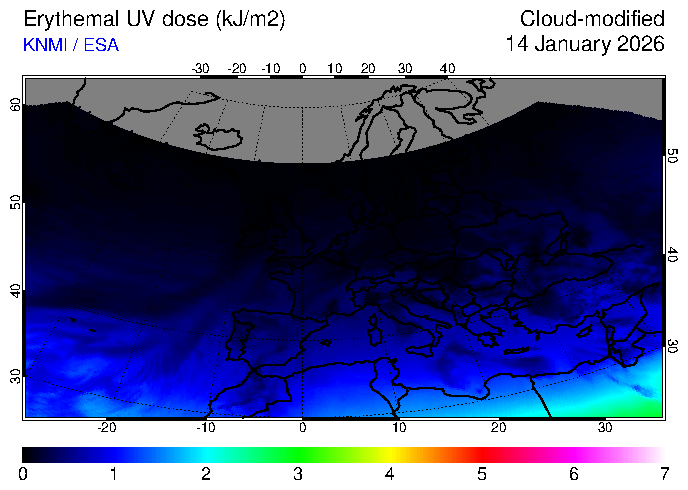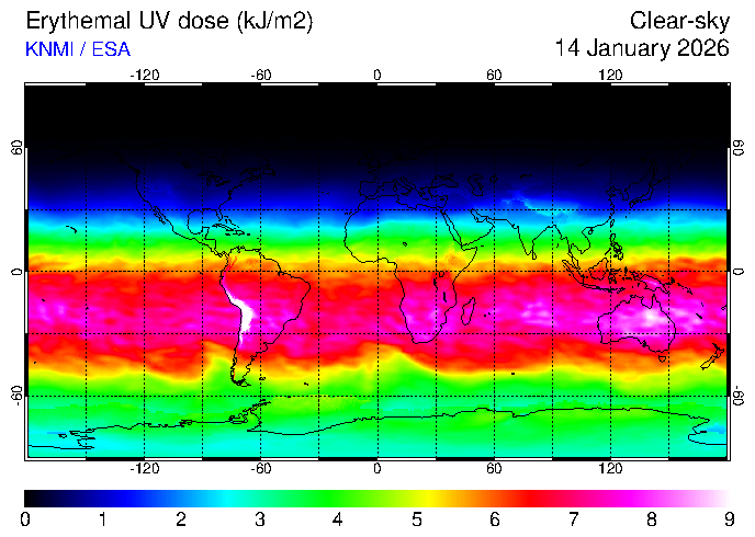 Erythemal UV dose of 14 January 2026