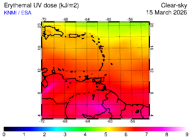 Clear-sky UV index:   erythemal