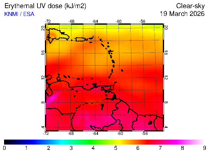 Clear-sky UV index:   erythemal