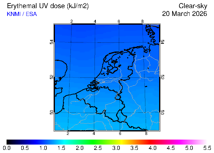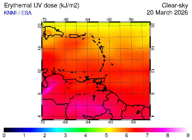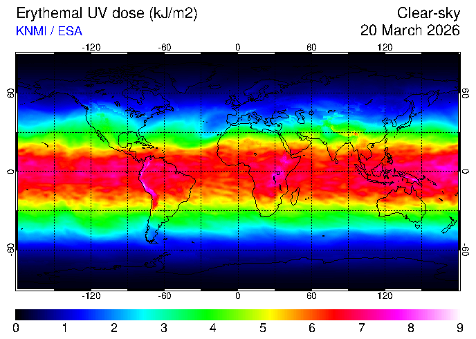 Clear-sky UV index:   erythemal