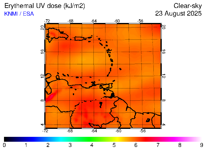 Clear-sky UV index:   erythemal