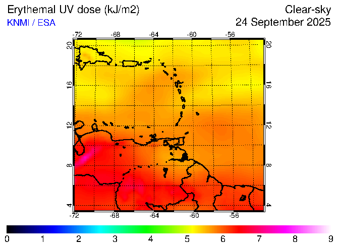 Clear-sky UV index:   erythemal