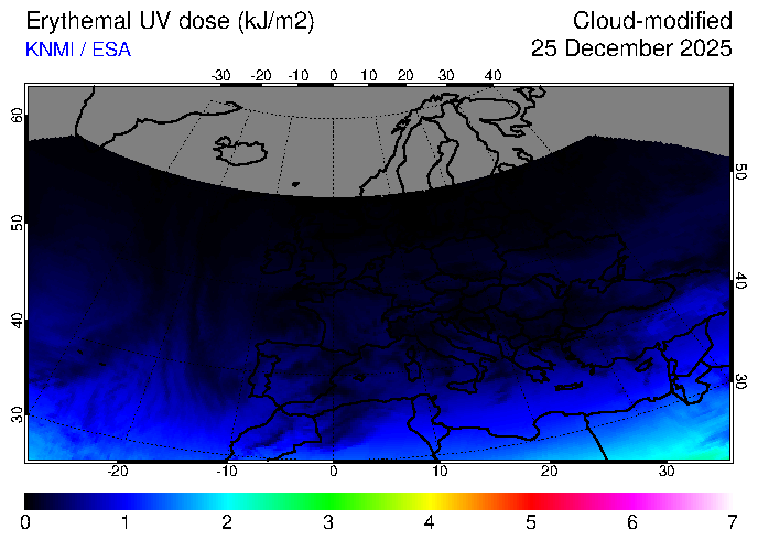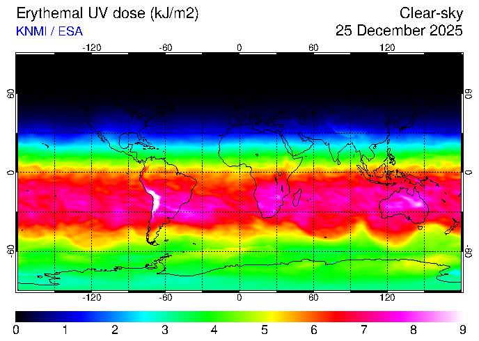 Erythemal UV dose of 25 December 2025