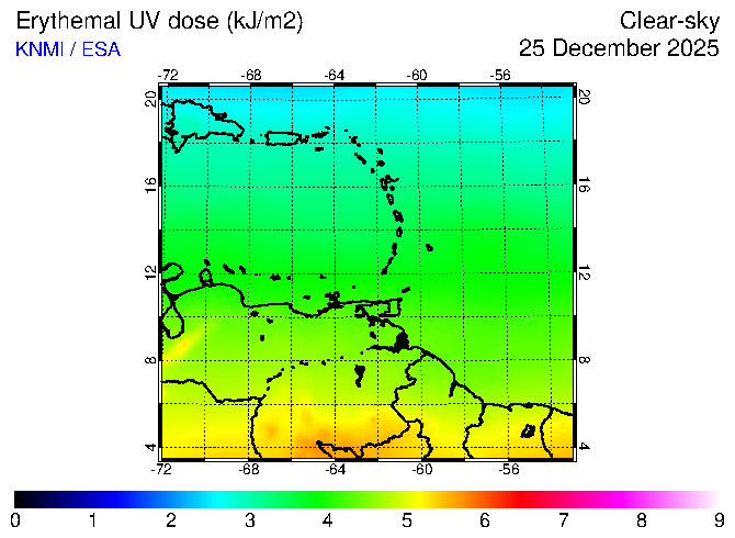 Clear-sky UV index:   erythemal