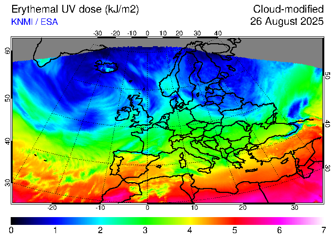 Erythemal UV dose of 26 August 2025
