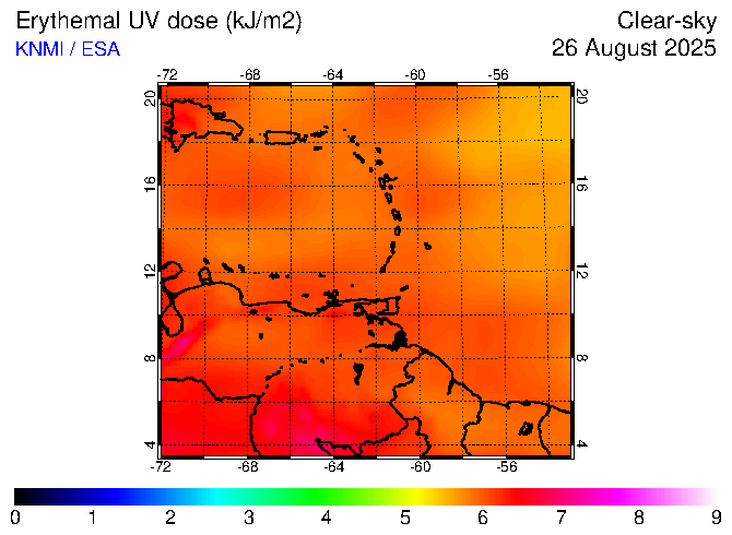 Clear-sky UV index:   erythemal