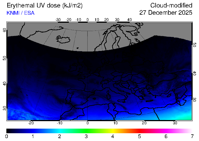 Erythemal UV dose of 27 December 2025