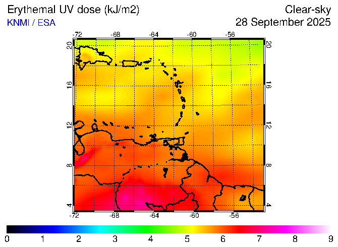 Clear-sky UV index:   erythemal
