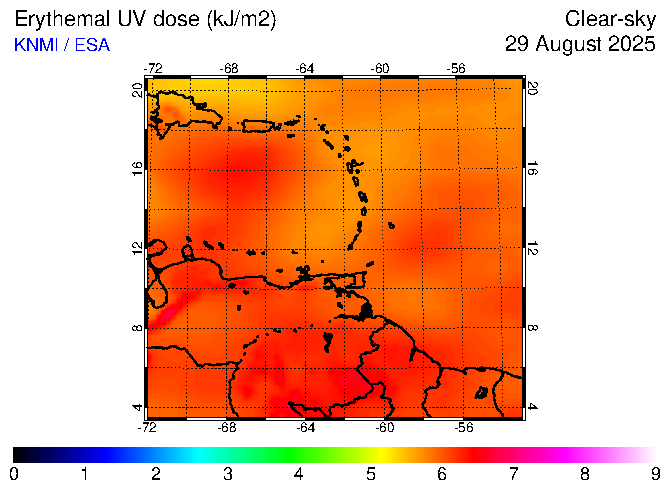 Clear-sky UV index:   erythemal