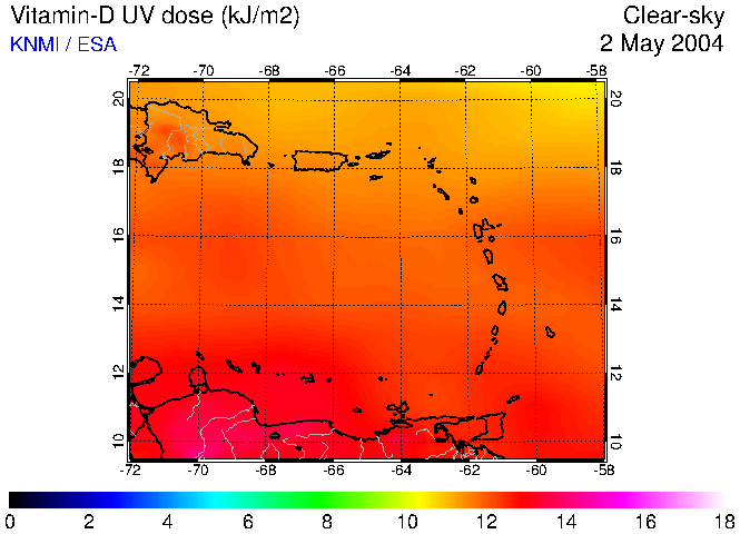 Clear-sky UV index:   erythemal