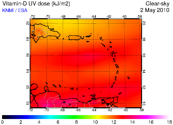 Clear-sky UV index:   erythemal
