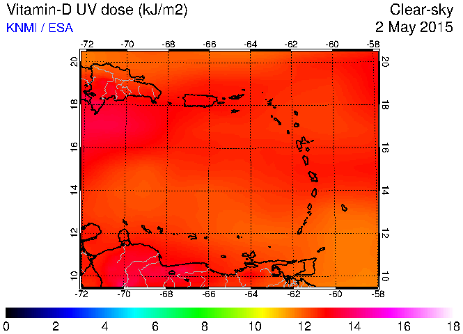 Clear-sky UV index:   erythemal