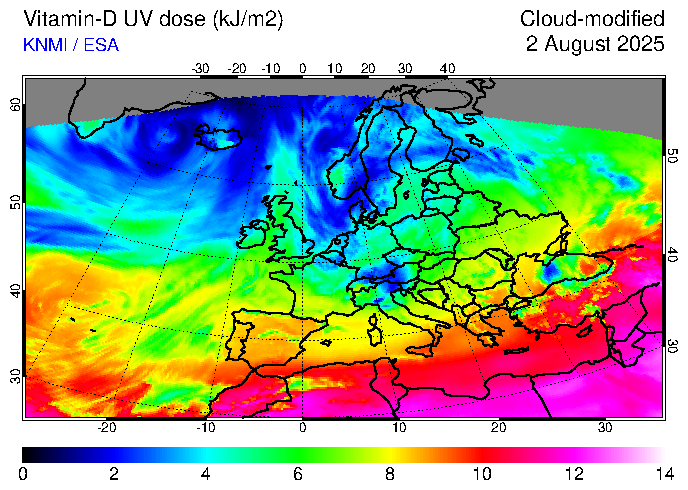 Vitamin-D UV dose of 02 August 2025