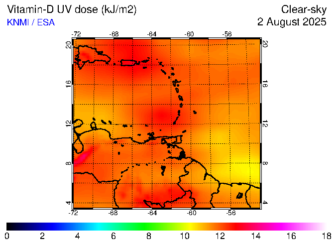 Clear-sky UV index:   erythemal