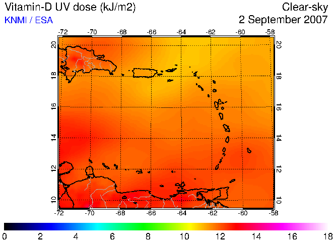 Clear-sky UV index:   erythemal