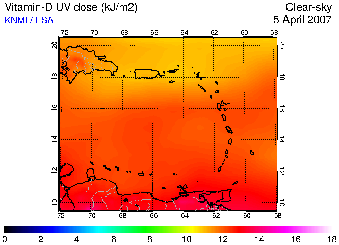 Clear-sky UV index:   erythemal