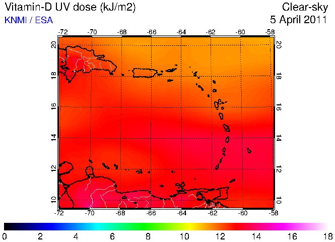 Clear-sky UV index:   erythemal