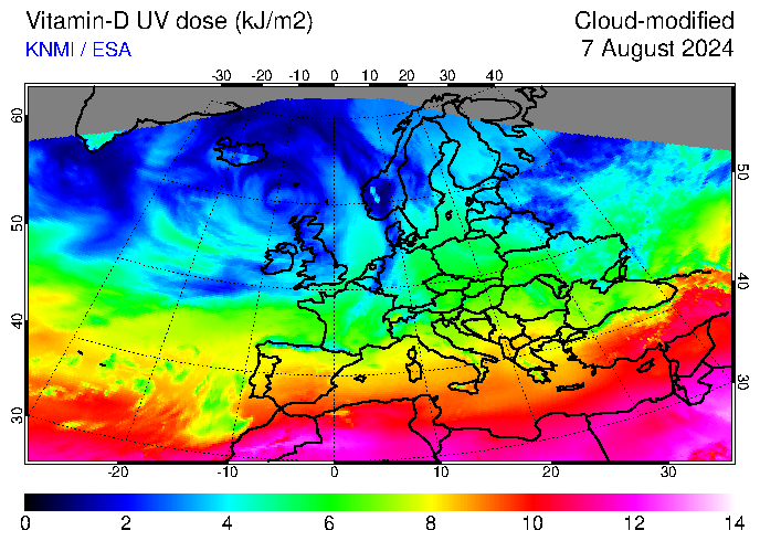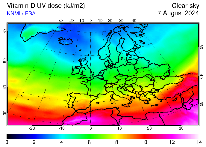 Vitamin-D UV dose of 07 August 2024