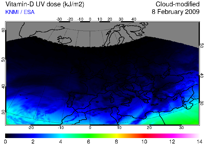 Vitamin-D UV dose of 08 February 2009