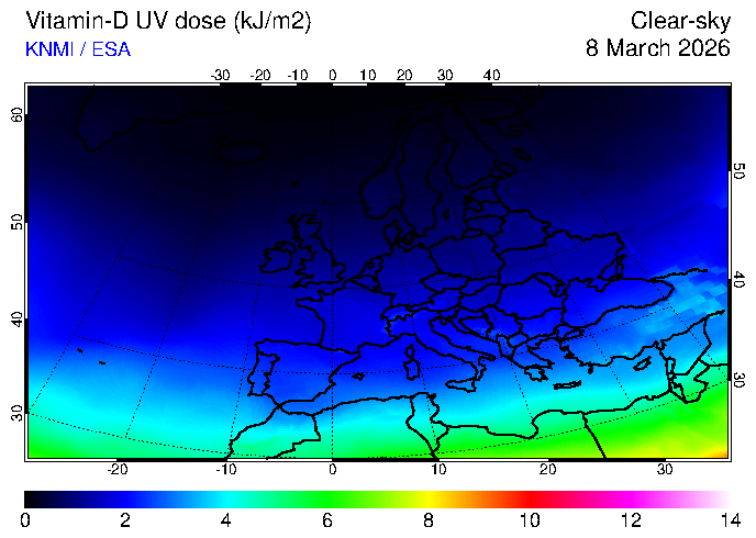Vitamin-D UV dose of 08 March 2026