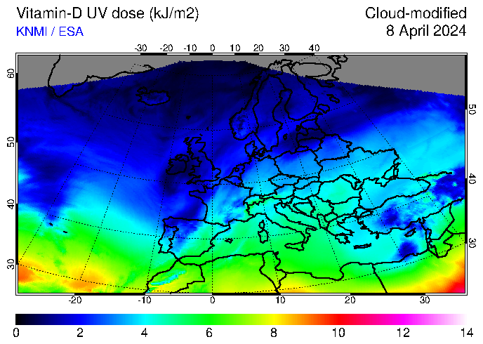 Vitamin-D UV dose of 08 April 2024