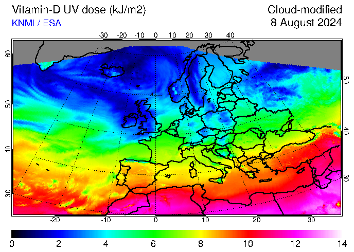 Vitamin-D UV dose of 08 August 2024