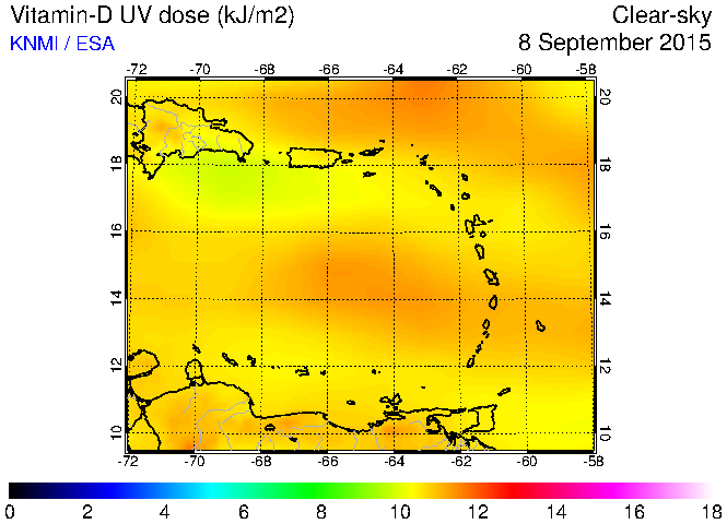 Clear-sky UV index:   erythemal