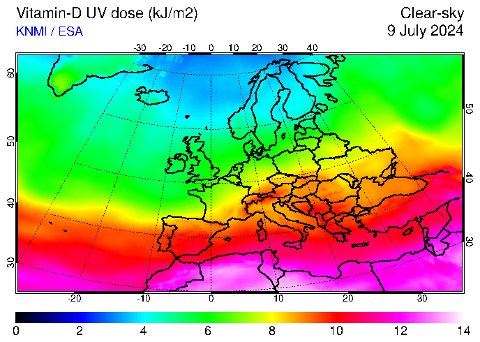Vitamin-D UV dose of 09 July 2024