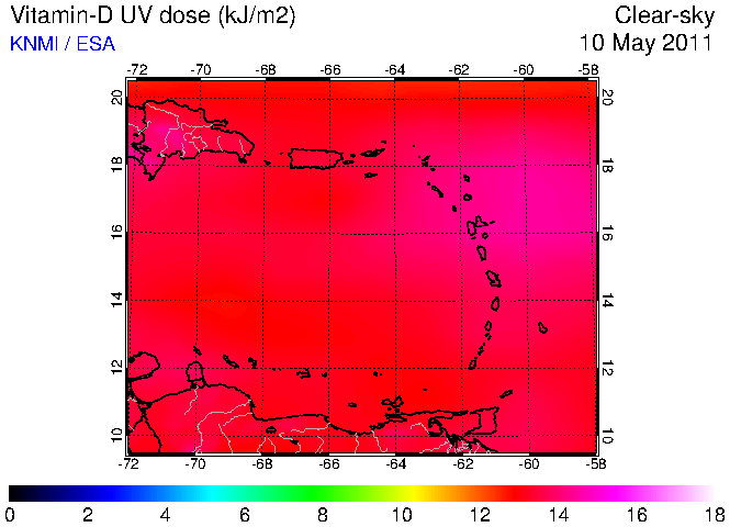 Clear-sky UV index:   erythemal