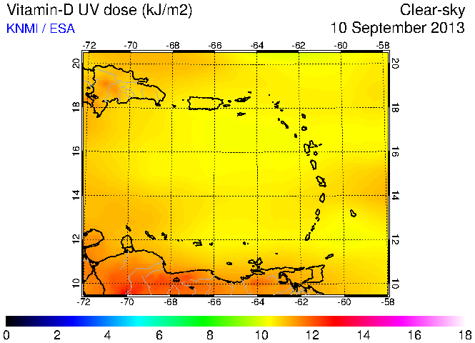 Clear-sky UV index:   erythemal