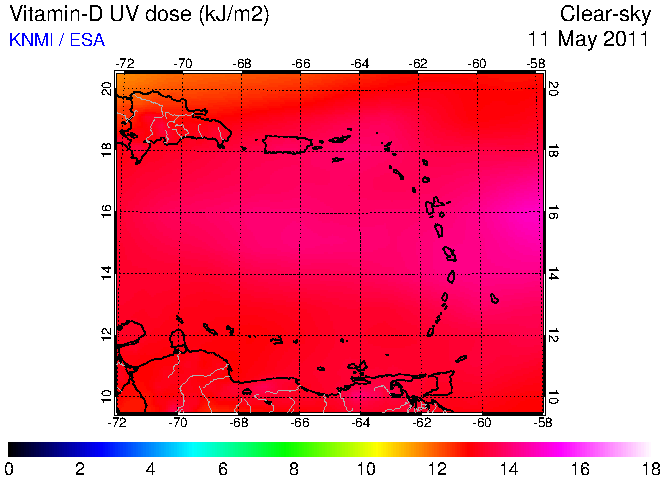 Clear-sky UV index:   erythemal