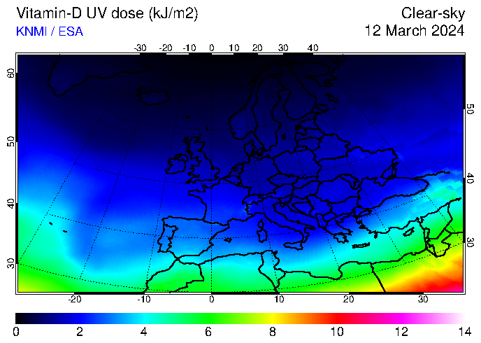Vitamin-D UV dose of 12 March 2024