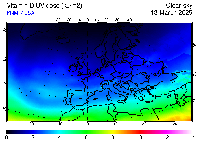 Vitamin-D UV dose of 13 March 2025